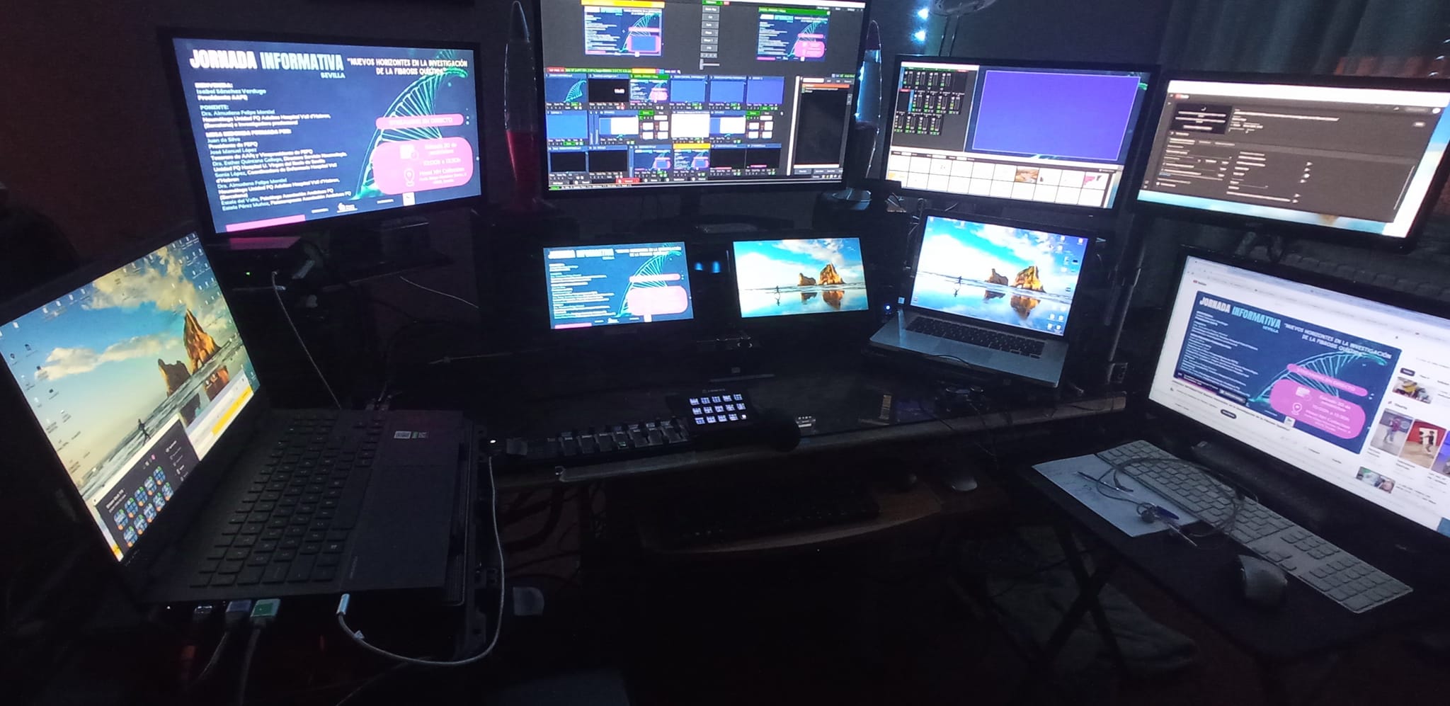 Producción completa, seminarios, eventos, ponentes remotos, envío de señal a pantallas y streaming.